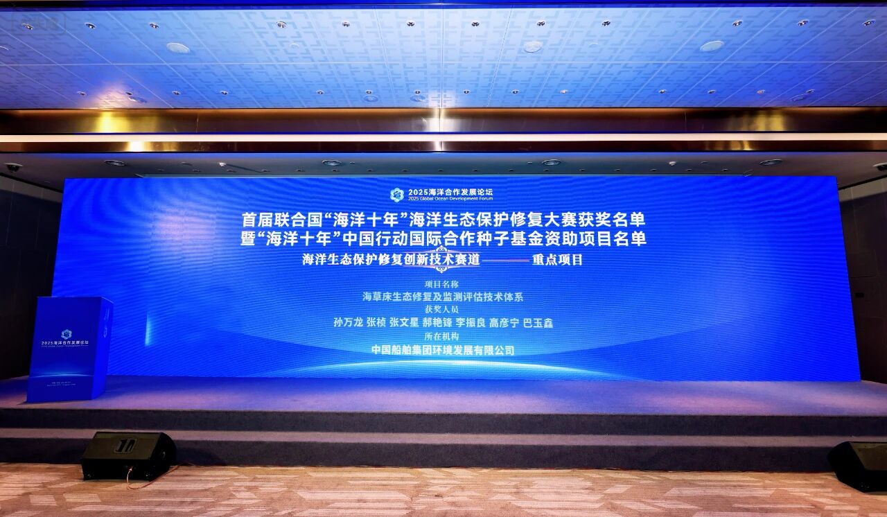 近日,中国船舶集团环境发展有限公司(以下简称“中船环境”)自主研发的《海草床生态修复及监测评估技术体系》项目,在首届联合国“海洋十年”海洋生态保护修复大赛中脱颖而出,荣获“海洋十年”中国行动国际合作种子基金资助重点项目。中船环境也是唯一独立自主完成海洋生态保护修复创新技术项目的企业代表。