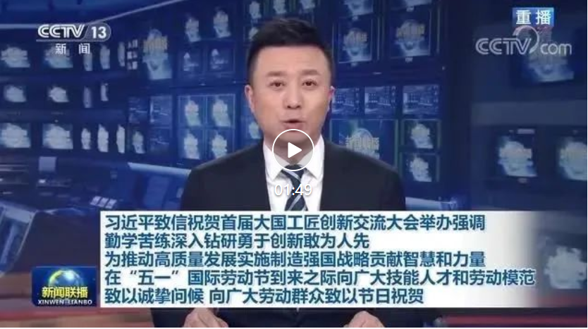 首届大国工匠创新交流大会4月27日上午在京开幕。中共中央总书记、国家主席、中央军委主席习近平发来贺信,向大会的举办表示热烈的祝贺,并在“五一”国际劳动节到来之际,代表党中央向广大技能人才和劳动模范致以诚挚的问候,向广大劳动群众致以节日的祝贺。