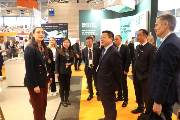 展会期间,中船集团举办了电解水制氢设备、超高温大型工业热泵、智能装备解决方案等30余场专题推介会,发布了全球单体最大3000立方电解水制氢设备,与德国、瑞典两家客户签约电解水制氢项目合作协议,与全球众多客户进行了技术与产品交流,深入推进国际市场营销,进一步提升了中船集团新兴产业的国际影响力。此外,中船集团还组织相关成员单位赴德国、法国等地,与林德、德希尼布和施耐德等全球知名跨国企业进行了推介交流与合作洽谈,进一步巩固合作关系,为后续深化合作奠定基础。同时,组织与中国国机集团、国家能源集团等中国企业,就展览展会、品牌宣传、国际项目合作等方面进行交流,携手拓展国际市场。