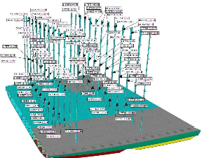 ????导架数字化模拟试箱可将导架精度问题在实体试箱前全部闭环,从而减少试箱时间和吊机负荷,降低安全风险;单个货舱试箱周期可缩短至2天,工作效率大大提高。