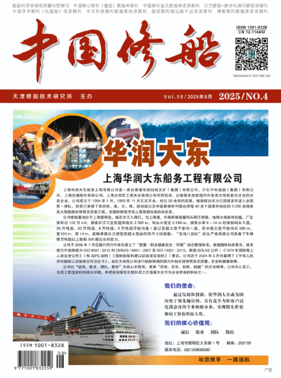 《中国修船》期刊于1987年创办,是国内公开发行的修船行业综合性科技期刊,是中国造船工程学会修船学术委员会的会刊。主管单位是中国船舶集团有限公司,主办单位是天津修船技术研究所,由《中国修船》编辑部编辑出版。《中国修船》设置“技术交流”“维修理论”“海洋平台”“经营管理”“经验集锦”等栏目,主要为修船业、航运界的科研院所及相关的船舶配套厂提供船舶维修信息、管理与技术服务,已成为工程技术人员和管理干部学习交流的园地,是了解中国修船市场、工艺技术及设备发展动向的重要窗口。