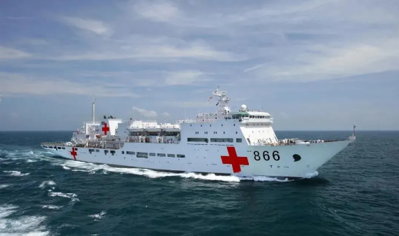 “和平方舟”号医院船由中国船舶集团旗下七〇八所研发设计,广船国际建造,舷号866,共有8层甲板,船内设有伤病员换乘、检伤分类、门诊、住院、后送撤离五大医疗区;拥有300多张可固定的床位,7间医护办公室,8个护士站,8间洁净手术室,各类诊疗科室18个;配备200多种医疗设备,具有远洋救生能力强、救护手段多样、医疗设施完备、配套设备先进、选派随船医务人员医术精湛等特点。