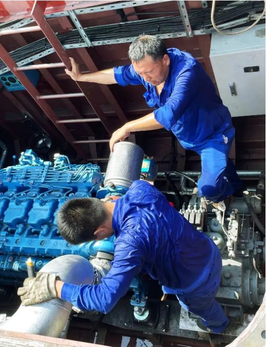 在闷热且狭小的机舱内,一个简单的动作,难度系数都要成倍增加,考验的不仅是船舶电工的体力,还有毅力。