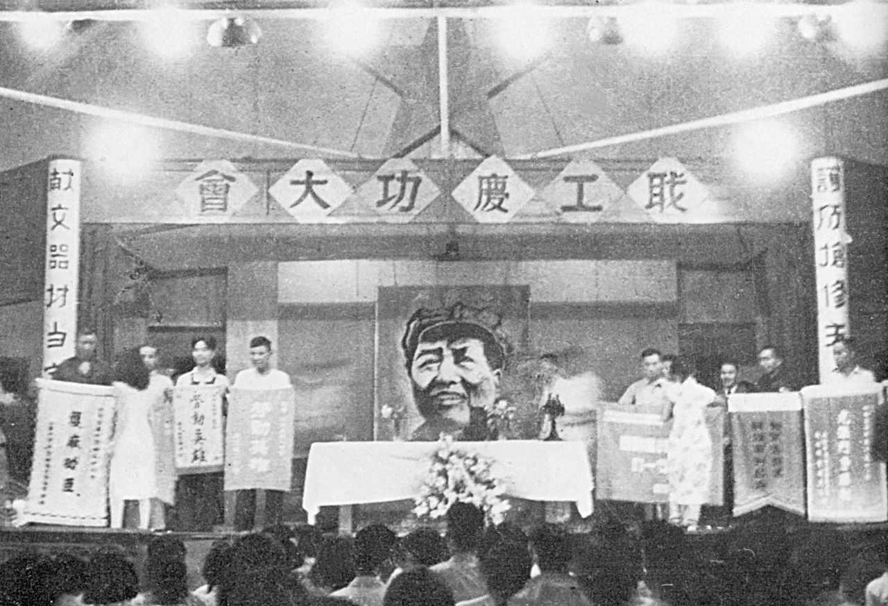 1949年7月上海,1949年7月23日,江南造船所举行“职工庆功大会”。上海市市长兼军管会主任陈毅、副市长曾山、华东海军司令员张爱萍、上海市总工会主席刘长胜等出席了大会。会上总结修复厂房设备的经验,宣布恢复生产表彰有功人员。全所有 134人被评为一、二、三等功臣受到表彰。