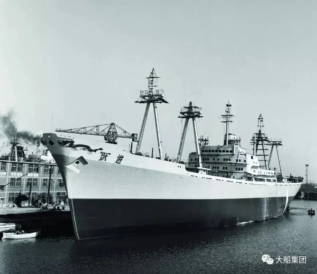 1958年大连,1958年11月,我国第一艘万吨级远洋货船“跃进”号在大连造船厂下水,这艘船采用的是从苏联引进的成套设计图纸和设备材料。