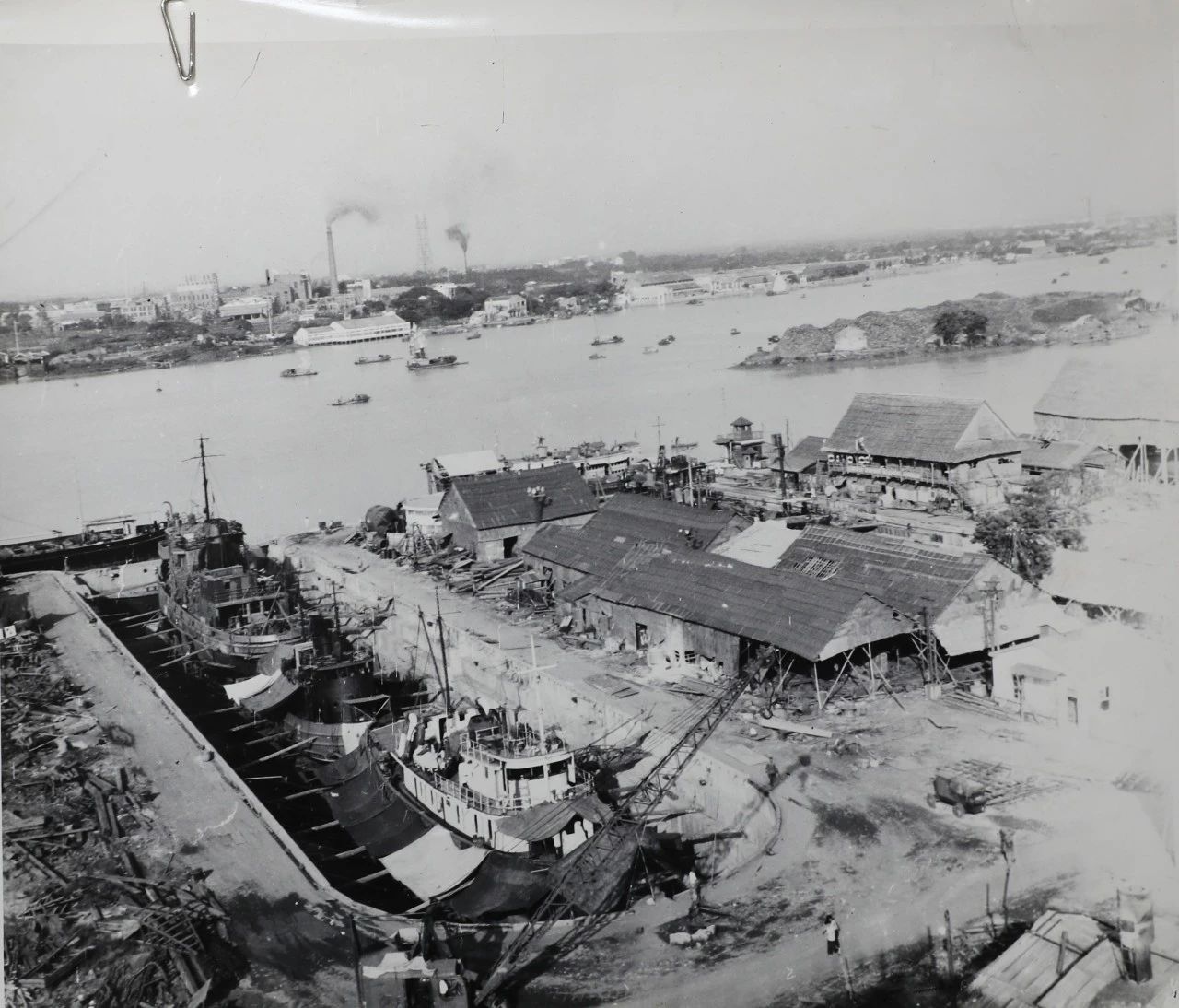 1958年广州,1958年,广船国际的前身广州造船厂的造船坞,图中的履带式起重机是广州造船厂主要的起重设备。