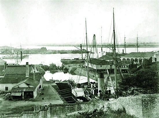 19世纪广州19世纪的柯拜船坞和录顺船坞。