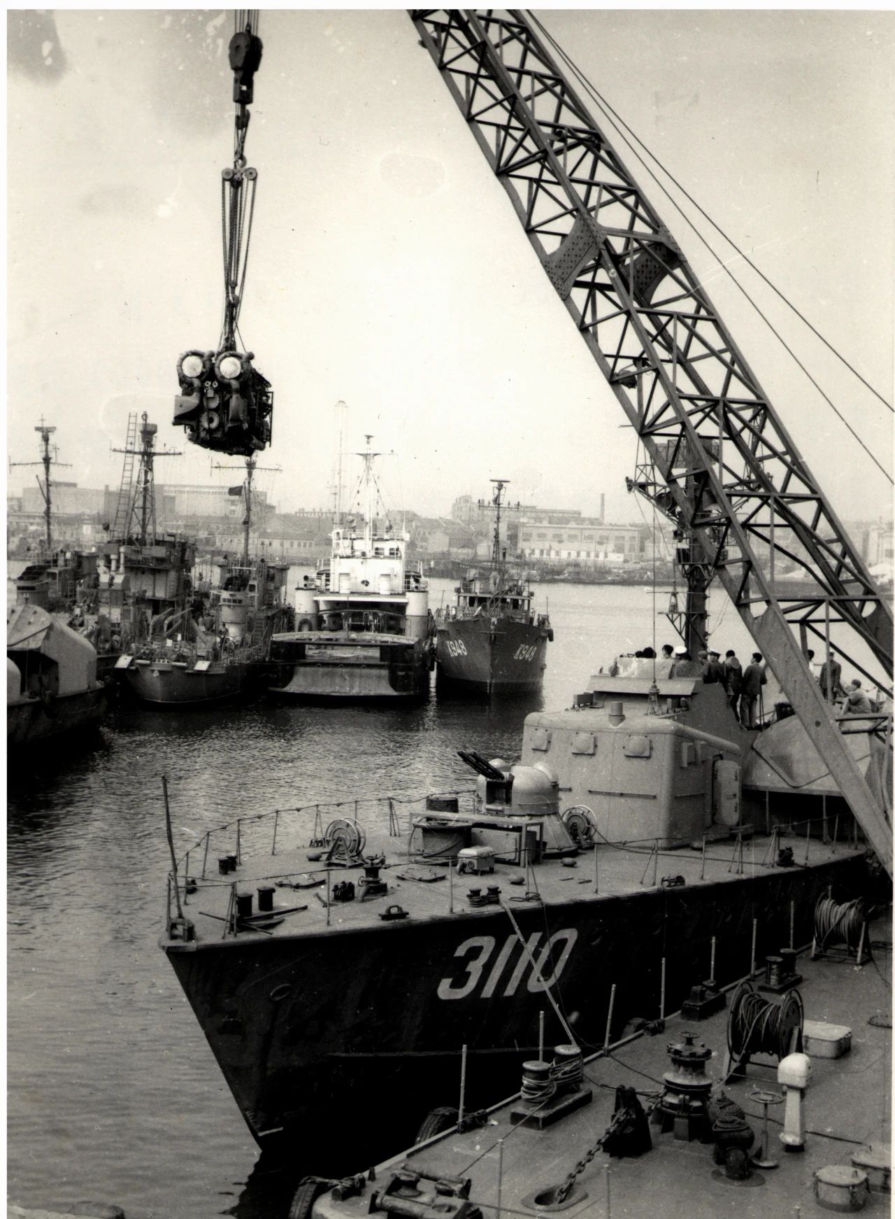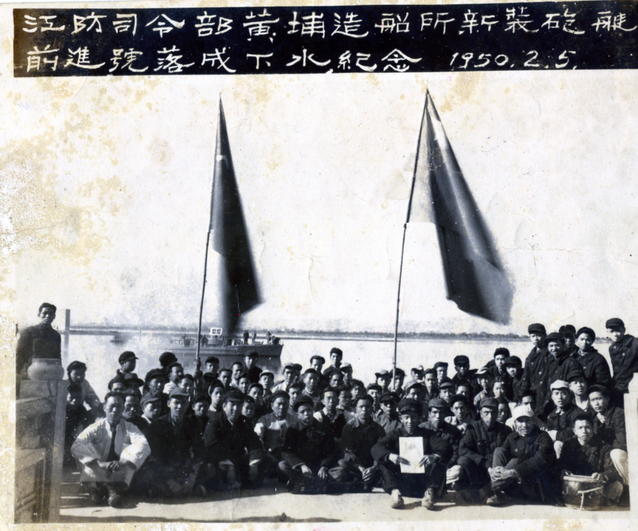 1950年广州1950年,万山海战功臣“前进号”炮艇在工厂下水。