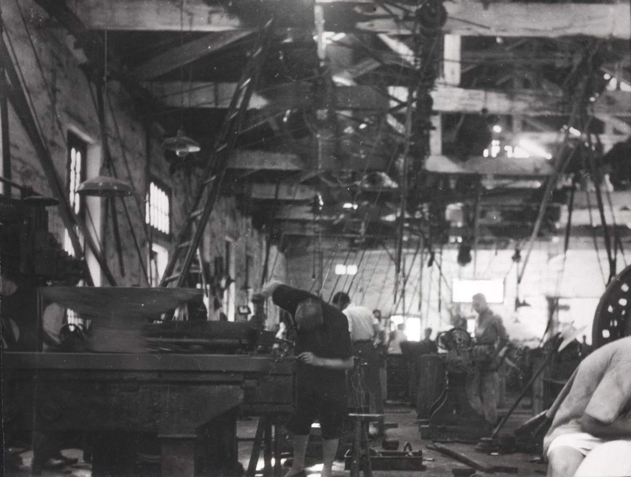 1934年武汉,解放前,武昌造船坐落于晚清时期湖广总督张之洞开办的纺纱局遗留的旧址武昌老城区文昌门外长江边。厂房是在“纺纱局”的旧址上兴建的,多为老旧房屋改造而成,年久失修,破败不堪。