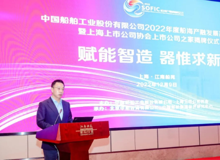 12月9日,中国船舶工业股份有限公司2022年度船海产融发展高峰论坛暨上海上市公司协会上市公司之家揭牌仪式在上海举行。论坛旨在搭建产业与金融交流合作平台,聚合船舶工业产业头部资源,洞悉行业赛道一线信息,深化金融助力实体经济发展,推动行业创新驱动。中国船舶集团党组成员、总会计师贾海英,上海上市公司协会会长、上港集团党委书记、董事长顾金山出席论坛并致辞。中国船舶集团党组成员、副总经理,中国船舶股份董事长盛纪纲发表主旨演讲。