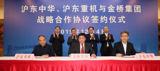 ????在杨金成、翁祖亮、冯永强、杭迎伟的共同见证下,中国船舶集团旗下沪东中华造船(集团)有限公司、沪东重机有限公司与上海金桥(集团)有限公司签订了战略合作协议。