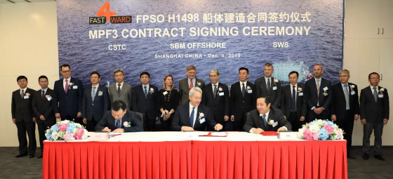 ????12月4日,中国船舶集团有限公司所属上海外高桥造船有限公司与SBM OffSHORE公司SBM Fast4ward FPSO船体系列项目第三艘船体合同签约仪式在上海举行。中国船舶集团董事长雷凡培出席签约仪式,并与SBM公司首席执行官Bruno Chabas进行会谈。双方就进一步加强交流沟通、扩大项目合作进行了深入探讨并达成广泛共识。中国船舶集团副总经理孙伟、SBM公司执行董事Bernard Van Leggelo参加上述活动。