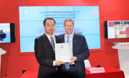 12月4日,法国船级社为中国船舶集团七〇八所签发21万吨双燃料散货船初步认可证书。