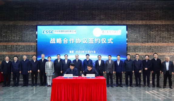 12月21日,中国船舶集团有限公司在南京分别与南京航空航天大学、江苏科技大学签署战略合作协议。中国船舶集团党组书记、董事长雷凡培,党组副书记、总经理杨金成,党组成员、副总经理钱建平、杜刚,南航党委书记郑永安,党委副书记、校长单忠德,江科大党委书记葛世伦,党委副书记、校长周南平等领导出席签约仪式。