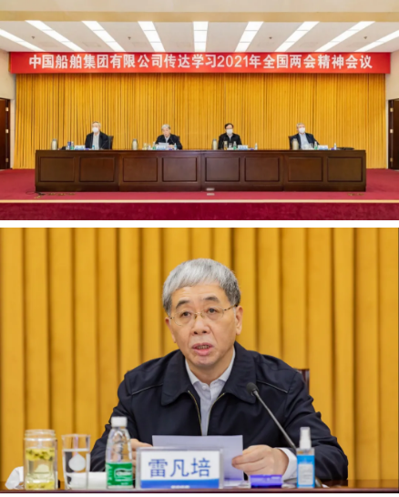 3月12日,中国船舶集团有限公司召开会议,传达学习习近平总书记全国两会期间重要讲话精神和全国两会精神,结合集团公司实际,研究部署贯彻落实措施。中国船舶集团党组书记、董事长雷凡培出席会议并讲话,党组副书记、总经理杨金成主持会议,党组全体成员出席会议。全国政协委员董强在会上传达了全国政协十三届四次会议精神,全国人大代表刘征在会上传达了十三届全国人大四次会议精神。