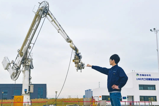 TA作为装卸-162℃低温液化天然气的专用设备,是业内公认的高技术、高难度、高附加值的“三高”产品。其创新性地突破了3D实时智能化管控等关键技术,解决了相关产品完全依靠国外进口的问题。与传统手动方式对接相比,可减少操作人员3~5名,提升装卸效率10%以上。