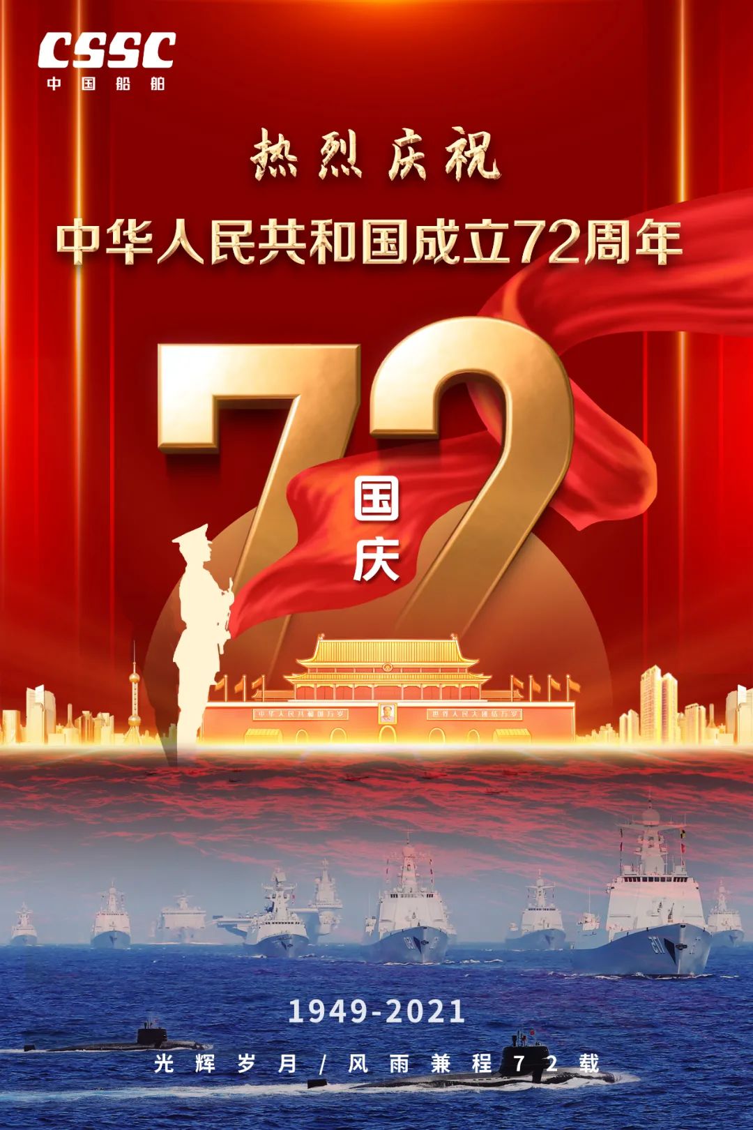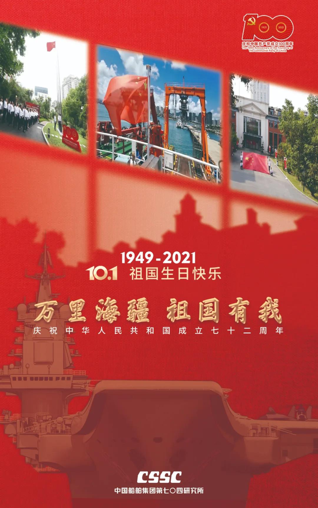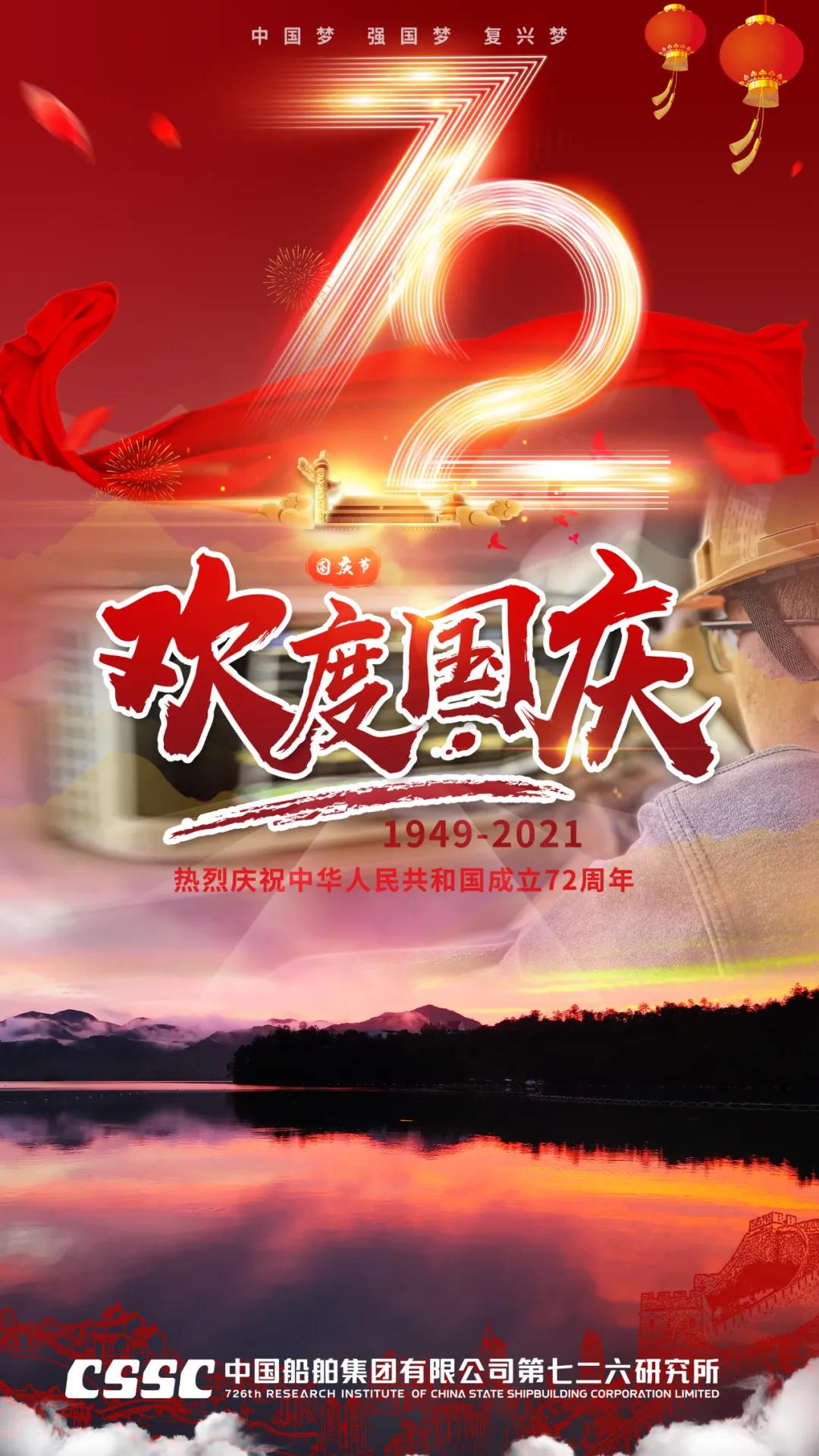 72年筚路蓝缕,72年风雨兼程,正值建党百年之际,恰逢新中国72周年华诞,中国船舶七二六所为祖国献上最真挚的祝福!祝福伟大祖国繁荣昌盛!七二六人将继续用智慧和汗水谱写水声华章,用创新和拼搏开拓新时代新征程,为建设海洋强国贡献磅礴力量!
