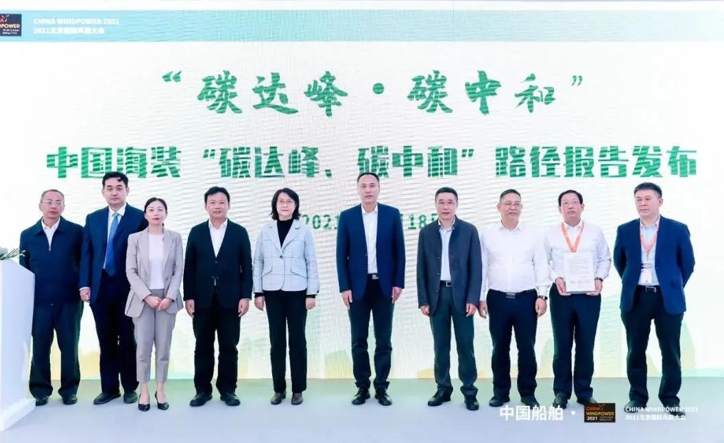 展会首日,中国海装举行了“碳达峰、碳中和”路径报告发布会。作为中国船舶集团风电产业集群的龙头单位,中国海装勇当落实“碳达峰、碳中和”目标的排头兵。为此,中国海装联合国家节能中心、工业和信息化部国际经济技术合作中心、重庆市能源利用监测中心等单位对中国海装总部及其下属基地的碳排放情况进行了全面摸底,并基于碳排放现状,提出了一系列有针对性的减碳零碳措施。未来两年内,中国海装将陆续开展减碳零碳行动,预计在2023年底实现碳中和。