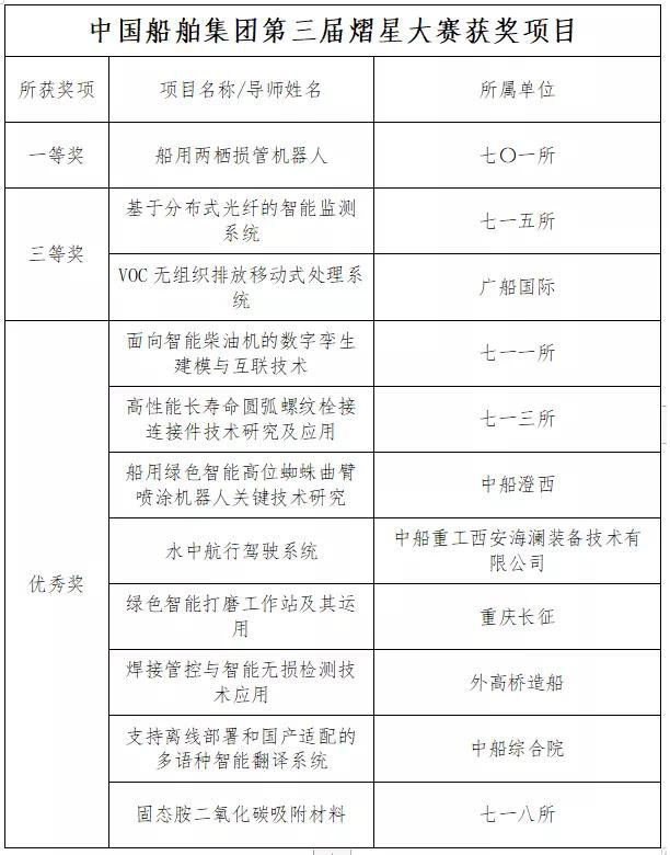 中国船舶集团高度重视本届熠星大赛工作,负责承办了先进制造技术赛道。该赛道共征集项目1111个,占大赛项目总数的三分之一。积极组织成员单位报名参赛,5大赛道共报名44项,获得一等奖1项、三等奖2项、优秀奖8项;推荐大赛常驻导师10名,飞行导师2名,3人获杰出导师奖、4人获大赛优秀导师奖;在本次大赛中总计获奖19个,获奖类型和数量上较往届均取得显著提升。