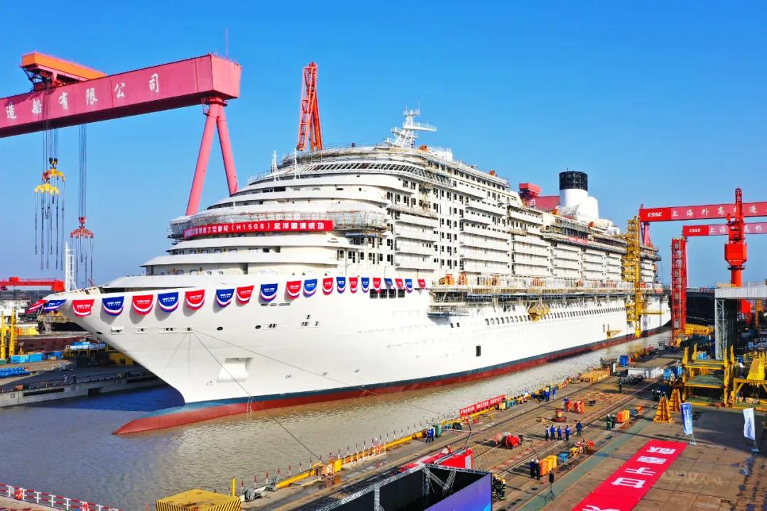 12月17日,备受关注的中国船舶集团“一号工程”——中国首制大型邮轮在中国船舶集团旗下外高桥造船顺利实现坞内起浮的里程碑节点。经过全船残余应力释放、首次测定重量重心等一系列关键工艺要素和技术指标,进一步验证中国首制大型邮轮在设计、工艺、生产准备、总装建造等阶段所取得的一系列重大科研成果,标志着该工程从结构和舾装建造的“上半场”全面转段进入内装和系统完工调试的“深水区”,向着2023年9月份完工交付的总目标又迈出了关键一步。