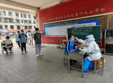 地处市区的广州公司,迅速组建了一支以党员为主的志愿者服务队,助力所在社区(鹤园居委会)开展全员常规核酸检测现场服务工作,以实际行动配合完成了6000多名居民核酸检测任务。该公司职教事业部2所学校2000余名学生分辖荔湾、黄埔两区,学校教职工主动作为,积极配合医护人员维护现场秩序、信息登记、查核健康码等,顺利完成2轮全员核酸检测工作。