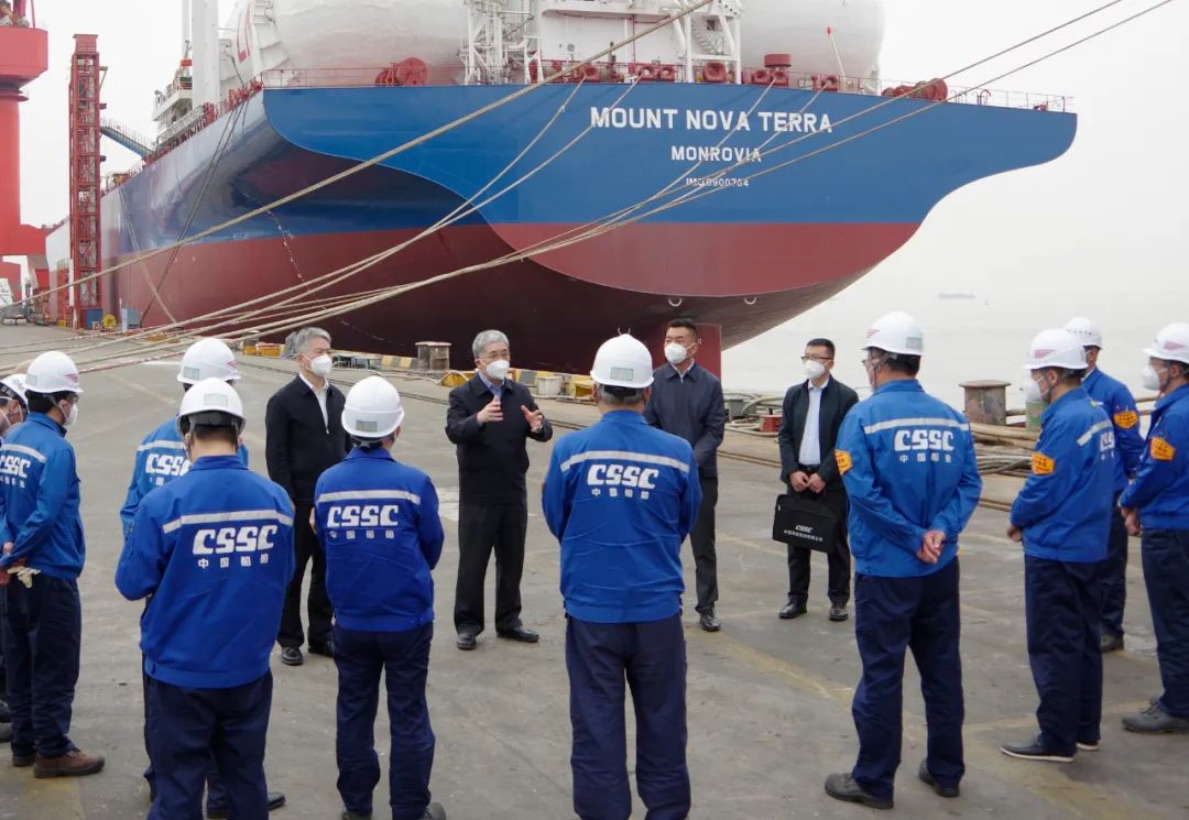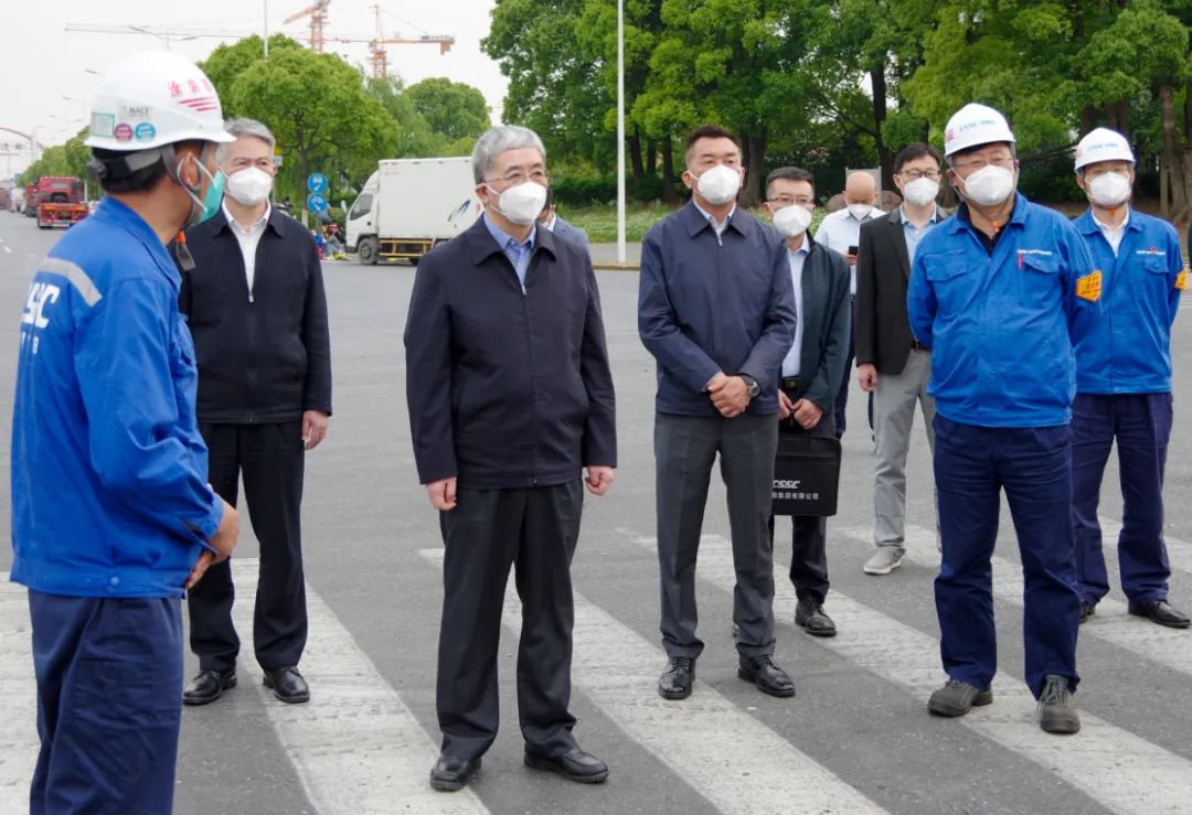 5月15日,中国船舶集团有限公司党组书记、董事长雷凡培到集团公司旗下上海外高桥造船有限公司调研疫情防控和复工复产工作。中国船舶集团党组成员、副总经理孙伟参加调研。