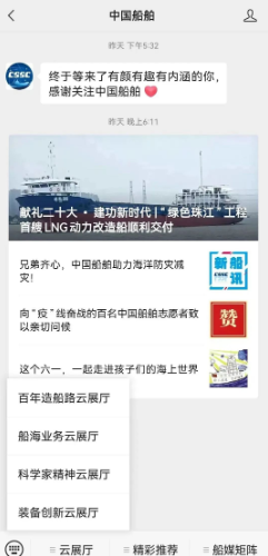 近日,中国船舶集团四大云展厅入驻集团公司微信公众号。