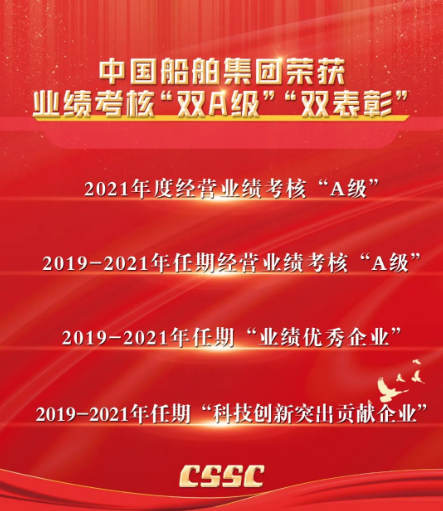 7月16日-17日,国务院国资委举办中央企业负责人研讨班,公布了中央企业2021年度和2019-2021年任期经营业绩考核结果,中国船舶集团荣获年度和任期考核“双A级”,并被评为任期“业绩优秀企业”和“科技创新突出贡献企业”。