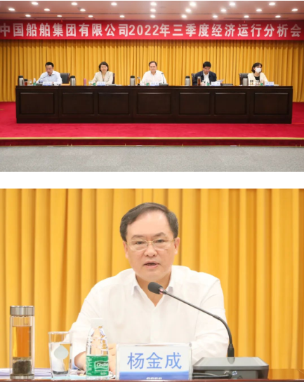 10月25日,中国船舶集团有限公司召开2022年三季度经济运行分析会,深入学习贯彻落实党的二十大精神,全面总结集团公司三季度经济运行情况,深入分析当前面临的形势,进一步推动各项重点工作落实,确保全面完成年度目标任务。中国船舶集团党组副书记、总经理杨金成出席会议并讲话,党组副书记、董事杜刚,纪检监察组组长、党组成员李佳颖,党组成员、总会计师贾海英出席会议,党组成员、副总经理盛纪纲主持会议。