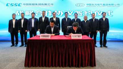 11月3日,中国船舶集团有限公司与中国东方电气集团有限公司在沪签署战略合作协议。中国船舶集团党组副书记、总经理杨金成,党组成员、副总经理盛纪纲,东方电气集团党组书记、董事长俞培根,党组成员、副总经理李忠军出席签约仪式。盛纪纲、李忠军分别代表双方在协议上签字。