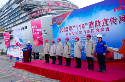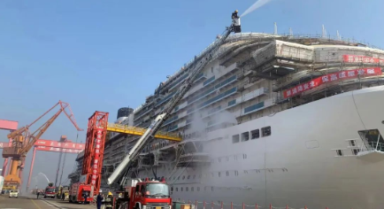 船舶建造过程中动火作业多、交叉作业多、有限空间多,消防安全一直以来都是企业安全生产工作的重点。本次演练选取大型邮轮作为演练对象,情景模拟船上发现火情后,外高桥造船以及联合演练单位的消防队伍实施协同救援,包括初期火情应对、应急报告、船上人员疏散、被困人员搜救、灭火等内容,检验了企业应对突发火情的快速反应能力和协同作战能力。