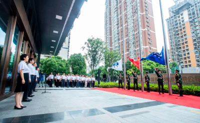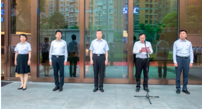 全体干部职工精神焕发,以崇高的敬意,向国旗、向伟大的祖国致敬。