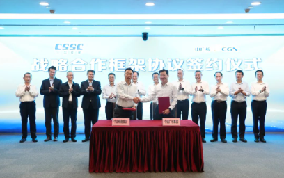11月3日,中国船舶集团有限公司与中国广核集团有限公司在上海签订战略合作协议。中国船舶集团党组副书记、总经理杨金成,中广核党委副书记、总经理高立刚出席签约仪式。中国船舶集团党组成员、副总经理盛纪纲,中广核党委常委、副总经理庞松涛分别代表双方在协议上签字。签约前,双方观看了两家企业宣传片,并就进一步加强沟通交流、深化多领域合作进行了深入探讨。