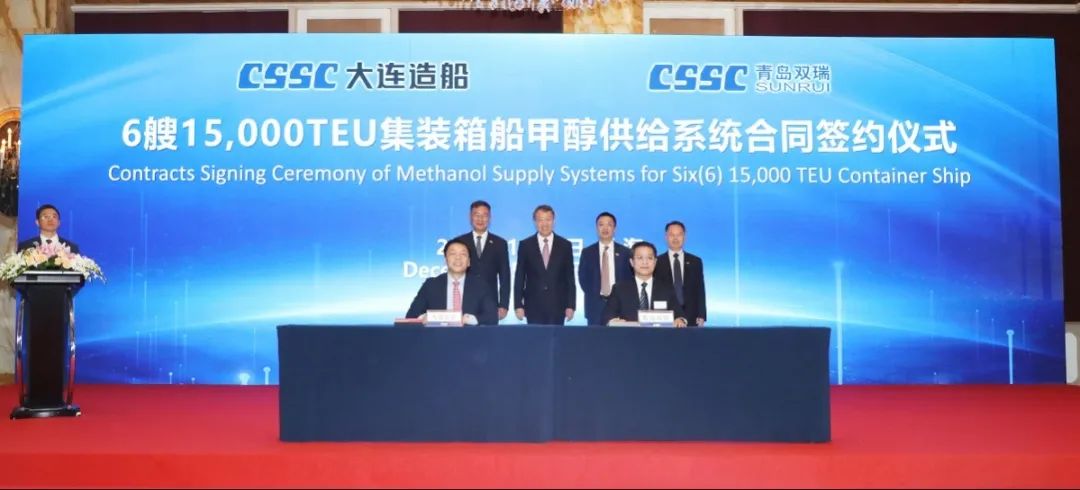 签约仪式上,外高桥造船、中船贸易与Seaspan、现代Glovis签署了6+4艘10800车LNG双燃料PCTC船项目;广船国际、中船贸易与HMM、现代Glovis签署了6+4艘10800车LNG双燃料PCTC船项目;北海造船、中船贸易与北银金租、山东海运签署了4艘325000吨超?型甲醇双燃料矿砂船项目;江南造船、中船贸易与太平洋气体签署了3艘99000方VLEC船项目;黄埔文冲、中船贸易与Benelux公司签署了2+1艘48000方LPG船项目;中船澄西、中船贸易与工银金租签署了4艘82600吨散货船项目;大连造船与七二五所青岛双瑞签署了15000TEU集装箱船甲醇供应系统项目。