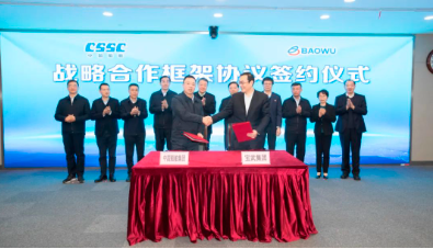 12月21日,中国船舶集团有限公司与中国宝武钢铁集团有限公司在上海签订战略合作框架协议。中国船舶集团党组书记、董事长温刚,宝武集团党委书记、董事长胡望明出席签约仪式。中国船舶集团党组成员、副总经理盛纪纲,宝武集团党委常委,宝钢股份党委书记、董事长邹继新分别代表双方在协议上签字。签约前,双方就进一步加强沟通交流、深化多领域合作进行交流探讨。