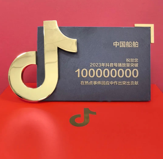 “中国船舶”抖音自2022年3月正式开通以来,粉丝数突破100万大关。截至2023年12月,“中国船舶”抖音总播放量约5.8亿,播放量破100万视频50条、破1000万视频7条、单条最高5200万,爆款视频10余条,多次成为社会性热点新闻,全网转发。在2023年国资小新发布的新媒体指数月度排行榜中,抖音平台两次排名第一。