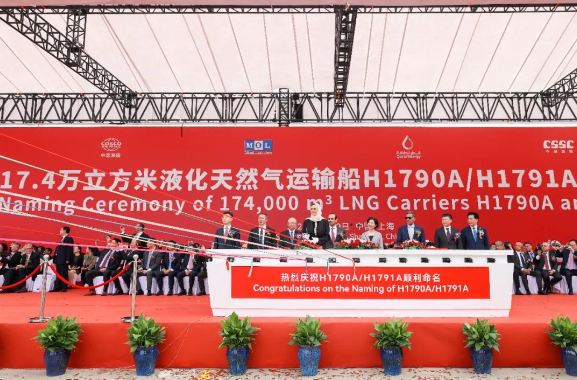 目前,沪东中华承建的“百船计划”首批12艘17.4万立方米大型LNG船项目已开工9艘,出坞5艘。此次命名的2艘船将分别于9月12日和9月下旬签字交付离厂。