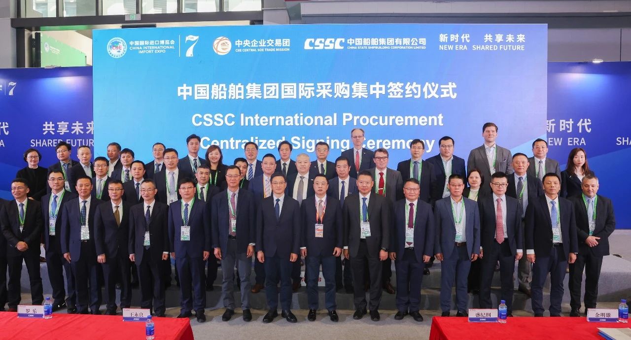 中国船舶集团有限公司党组成员、副总经理盛纪纲应邀参加第七届进博会暨虹桥国际经济论坛开幕式,出席11月6日下午举行的第七届进博会国资委中央企业交易团中国船舶交易分团采购集中签约仪式并致辞。