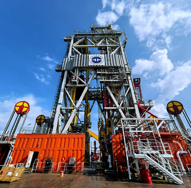 建造团队仔细论证、推演、执行,整整28辆大卡车的零件,58天完成组装,实现了轻型非负重井架一次安装到位,创造了行业内螺栓连接式井架组装速度的新纪录,为保证船舶建造周期可控立下了汗马功劳。