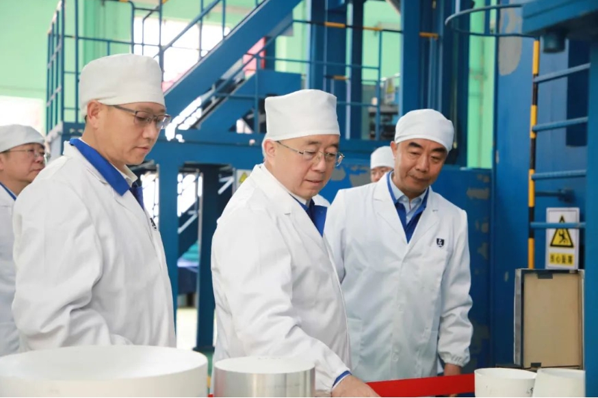 王国强深入生产科研一线,调研了相关装备园区、车间和重点产品,与全国技术能手、一线工人就工装应用、工艺工法、安全生产等进行亲切交流,听取了企业负责人关于生产经营、科技创新、人才培养、精益管理、发展规划、党的建设等方面情况汇报,并对下一步工作提出具体要求。