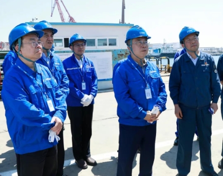 6月21至22日,中国船舶集团有限公司党组副书记、董事、总经理王国强调研中船集团旗下辽海装备、渤海造船、大连造船,进行安全生产检查,出席专题安全座谈会,强调要深入贯彻习近平总书记重要指示批示精神,按照集团公司“1-1-7-8”工作安排和“1-1-9-3-1”数智化转型愿景要求,坚守强军首责,不断加强安全、质量管理,坚持创新驱动,提升精益化管理水平和数智化发展水平,开启向深蓝进发的新纪元。