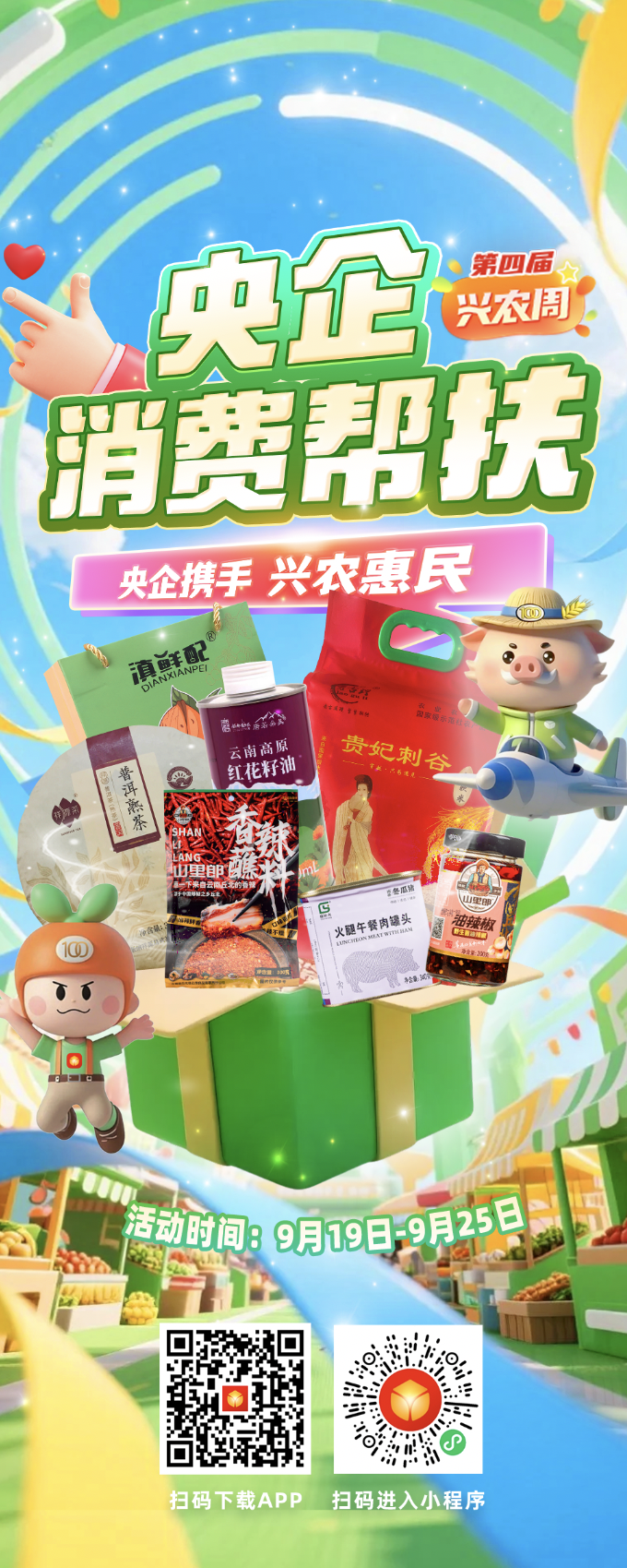 本届“央企消费帮扶兴农周”活动时间为9月19日~9月25日,发布了央企消费帮扶电商平台助农大数据,线上开展限时秒杀、拼团采购、跨店满减等促销活动,线下举办特色农产品展销会、创办非遗等特色主题展,再搭配包括现场签约、展位打卡等在内的活动,共同打造了一场“能看、能尝、能买、能玩”的“兴农”盛宴。