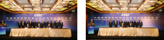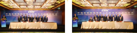 ????主要签约项目包括:中国船舶集团所属重庆川东船舶重工有限责任公司与中远海运(上海)有限公司1.38万吨不锈钢化学品船项目;中国船舶集团所属大连船舶重工集团有限公司与招商轮船VLCC项目;中国船舶集团所属上海外高桥造船有限公司与工银租赁21万吨散货船项目、外高桥造船与EPS公司20.9万吨双燃料散货船项目;中国船舶集团所属江南造船(集团)有限责任公司与太平洋气体公司VLEC项目、江南造船与 SINOGAS86000立方米VLGC项目、江南造船与UECC公司3600车汽车滚装船项目、江南造船与派格达克公司22000方乙烯船项目;中国船舶集团所属广船国际有限公司与斯坦纳公司5万吨甲醇双燃料油船项目、广船国际与EPS公司LNG双燃料苏伊士油船项目、中国船舶集团所属沪东中华造船(集团)有限公司与MOL18600立方LNG加注船项目;中国船舶集团所属武船集团青岛北海船舶重工有限责任公司与中国船舶集团所属中船租赁21万吨散货船项目、中国船舶集团所属中船澄西船舶修造有限公司与国银租赁85000吨散货船项目、重庆川东船舶重工与重庆冠达世纪游轮650客游轮项目;中国船舶租赁与 Golar LNG 船舶改装融资租赁项目、中国船舶租赁与SINOGAS86000立方米VLGC融资租赁项目;中船租赁与山东海运21万吨散货船融资租赁项目、中船租赁与Navig 8 成品油船联合投资协议、中船租赁与新加坡星展银行VLCC融资协议。