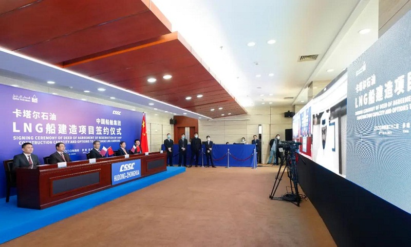 ????2019年4月22日,卡塔尔石油委托其子公司卡塔尔天然气公司就“百艘LNG船计划”进行招标。中国船舶集团高度重视、精心准备、积极沟通,组织旗下沪东中华联合中国船舶工业贸易有限公司(CSTC)全力推进各项竞标工作。经过一年的不懈努力和先后四轮谈判,中国船舶集团最终在激烈的国际竞争中胜出,为卡塔尔石油建造下一代LNG船,彰显了中国船舶集团在高端海洋装备领域的强大实力。此次签约也将为中国船舶集团完成全年目标任务奠定坚实基础。