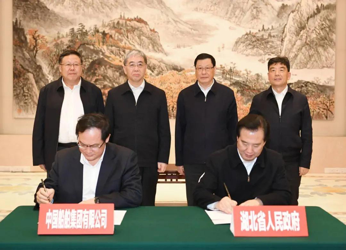 会见后,杨金成与黄楚平分别代表中国船舶集团和湖北省政府签署了战略合作协议。
