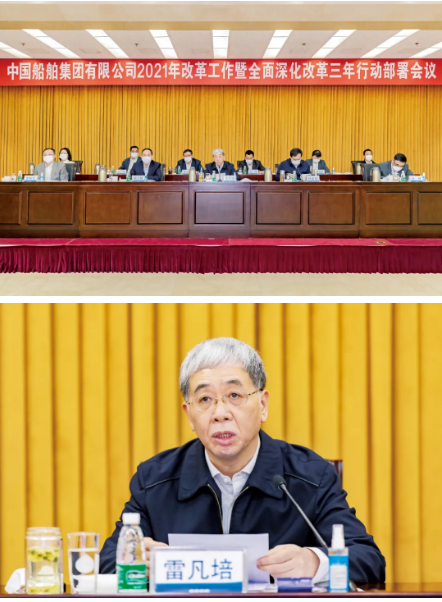 3月23日,中国船舶集团有限公司召开2021年改革工作暨全面深化改革三年行动部署会议,深入贯彻党中央、国务院关于国企改革的系列决策部署,认真落实国企改革三年行动要求,推动集团公司全面深化改革三年行动实施方案落实落地。中国船舶集团党组书记、董事长、全面深化改革领导小组组长雷凡培出席会议并讲话,党组副书记、总经理、全面深化改革领导小组副组长杨金成主持会议,党组成员、副总经理、全面深化改革领导小组副组长钱建平在会上作了集团公司2021年改革工作报告,集团公司外部董事、党组成员出席会议。集团公司战略规划部负责人在会上对集团公司全面深化改革三年行动实施方案进行了宣贯。