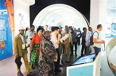来自非洲12个发展中国家基础设施建设及规划相关部门的高级官员在徐工集团展厅内参观。