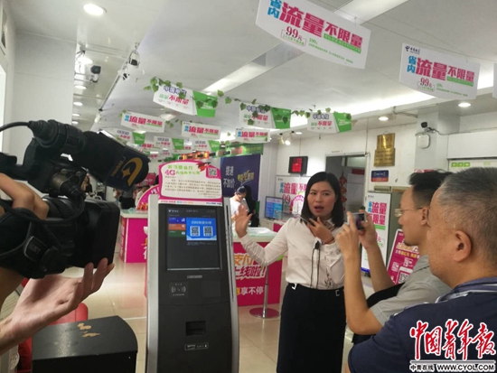 中国电信广西公司一位小CEO在给媒体讲解当地营业厅的日常工作。中国青年报?中青在线记者 潘圆/摄
