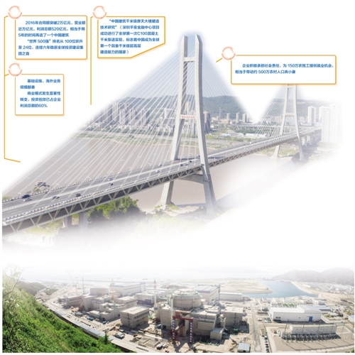 中国建筑工程总公司有关负责人告诉记者,基础设施作为中国建筑产业结构调整的重要方向,在市场投资大幅下降、政府融资平台大量清理、财政金融政策不断紧缩、铁路市场剧烈调整的严峻形势下,做到了逆市大发展。中国建筑积极推进转型升级,投资建造了一大批关系国计民生的大型基础设施工程。特别是近几年间,随着国家基础设施投资建设快速发展,“京津冀协同发展”“长江经济带”“一带一路”三大战略的强力引领,中国建筑基础设施事业得到了跨越式发展,业务覆盖高速铁路、轨道交通、高速公路、隧道桥梁、机场站房、能源核电、市政管网、水工港务等几乎全部基础建设领域。截至“十二五”末,中国建筑基础设施已完成投资2000亿元,续投将达万亿元,投资、建设的铁路里程1800多公里;公路里程达十几万公里;轨道交通里程数百公里。隧道、桥梁、机场、港口、核电等工程星罗棋布,已成为国家城市综合管廊和海绵城市建设的主力军。如今的中国建筑已成为全球领先的基础设施投资建设服务商。