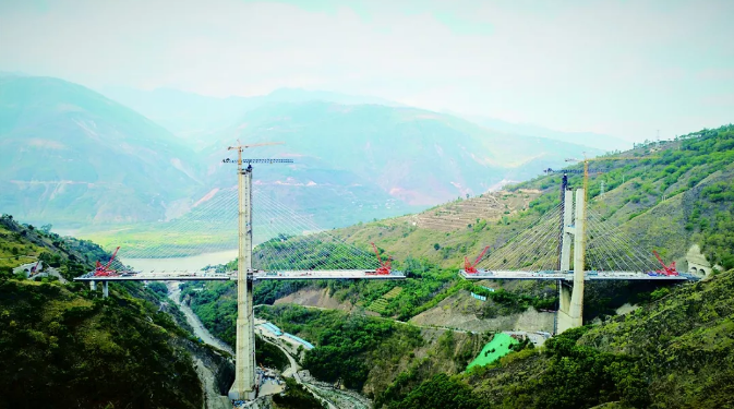 ????近日,由武船集团承建的云南格巧高速双河特大桥巧家侧边跨顺利实现合龙。双河特大桥桥梁全长705.6米,是目前云南省最大的高低塔组合梁斜拉桥。